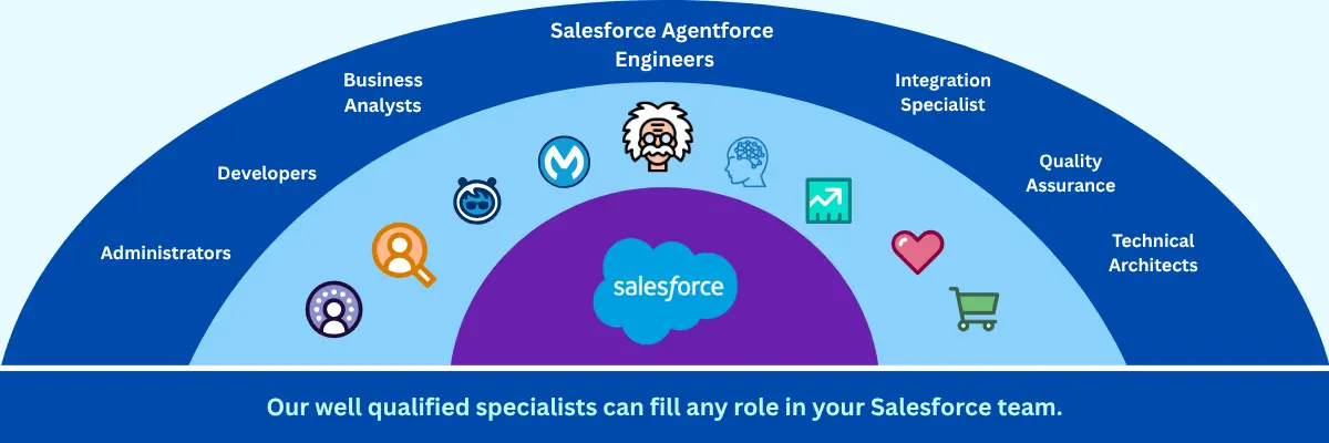 You can hire a wide range of professionals including Salesforce Administrators, Developers, Consultants, Solution Architects, QA Engineers, Business Analysts, Data Specialists, Integration Experts, and AI/Automation Engineers. We match you with experienced talent based on your specific business needs, project size, and technical requirements.